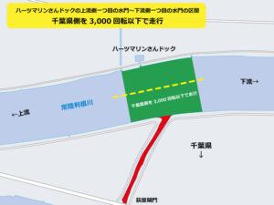 • スタートから9時までは、息栖大橋から上流側二つ目の水門まで(エリア図1参照)