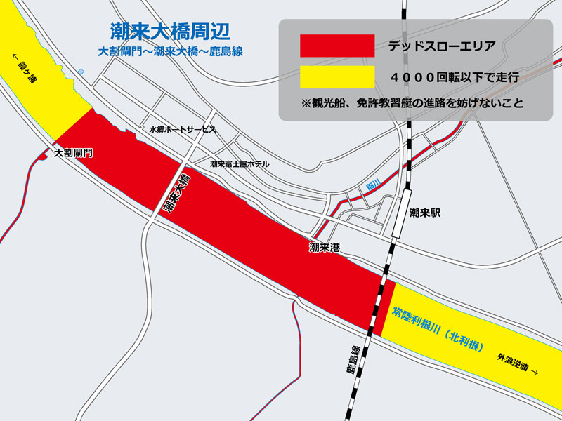 • 潮来大橋周辺「大割閘門~潮来大橋~鹿島線」(エリア図3参照)